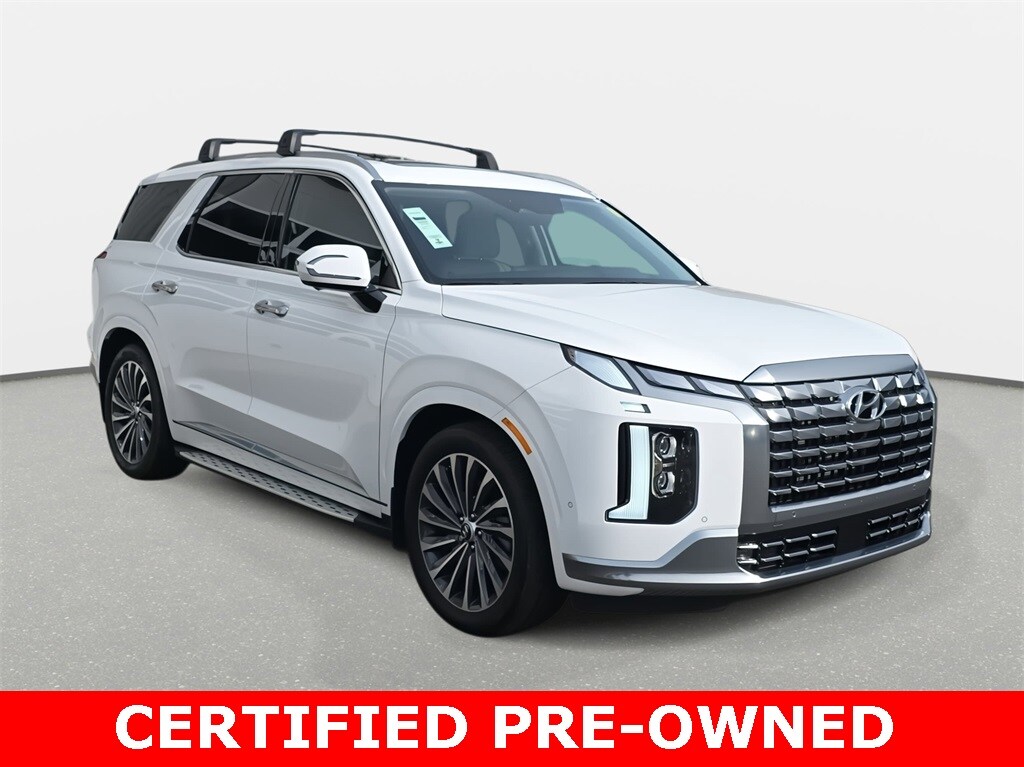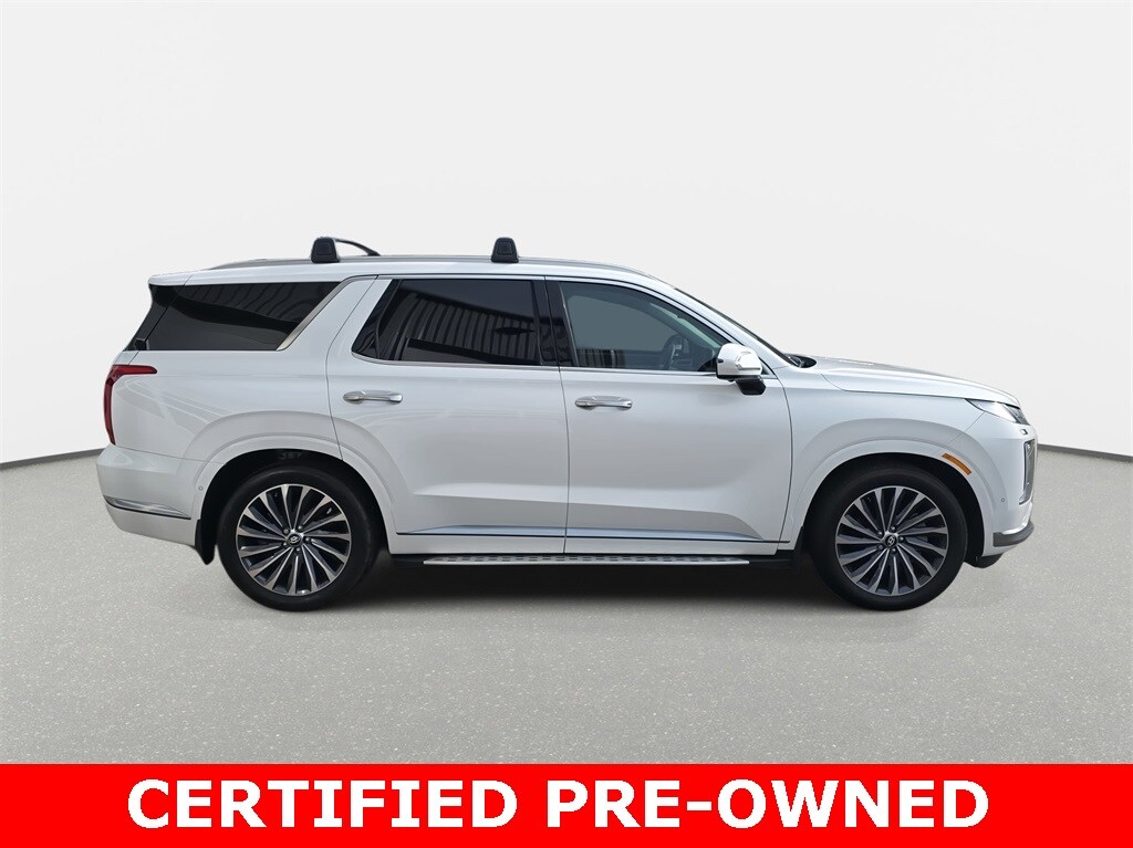 Recent Arrival! 2025 Hyundai Palisade Calligraphy AWD Hyper White AWD 8-Speed Automatic with SHIFTRONIC V6 *LOCAL TRADE*, *REMAINDER OF FACTORY WARRANTY*, *INCLUDES WARRANTY*, *CLEAN HISTORY...NO ACCIDENTS REPORTED*, *ONE OWNER...NO ACCIDENTS REPORTED*, *ONE OWNER*, *BOUGHT HERE NEW*, *APPLE CARPLAY/ANDROID AUTO*, Palisade Calligraphy AWD, 4D Sport Utility, V6, 8-Speed Automatic with SHIFTRONIC, AWD, Hyper White, Beige/Navy w/Premium Nappa Leather Seat Trim, 3rd row seats: split-bench, 4-Wheel Disc Brakes, ABS brakes, Air Conditioning, Alloy wheels, Apple CarPlay & Android Auto, Front Bucket Seats, harman/kardon® Speakers, Heads-Up Display, Heated & Ventilated Front Bucket Seats, Heated front seats, Heated rear seats, Memory seat, Navigation System, Option Group 01, Power driver seat, Power passenger seat, Power windows, Premium Nappa Leather Seat Trim, Reclining 3rd row seat, Remote keyless entry, Split folding rear seat, Steering wheel mounted audio controls, Ventilated front seats, Ventilated rear seats, Wheels: 20" x 7.5J Calligraphy Exclusive Alloy.